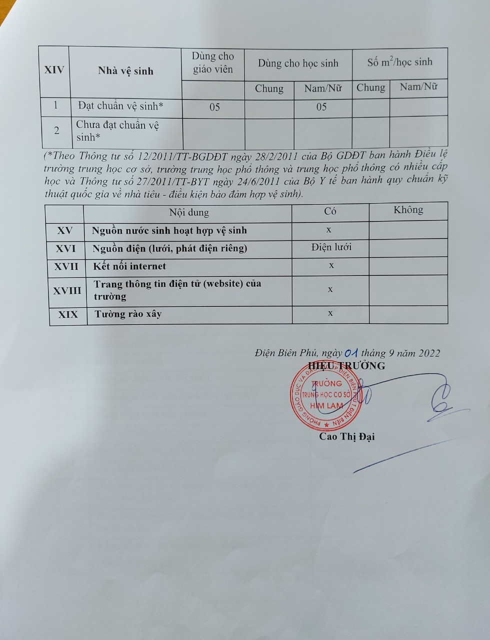 Công khai thông tin cơ sở vật chất trường THCS Him Lam Năm học 2022-2023