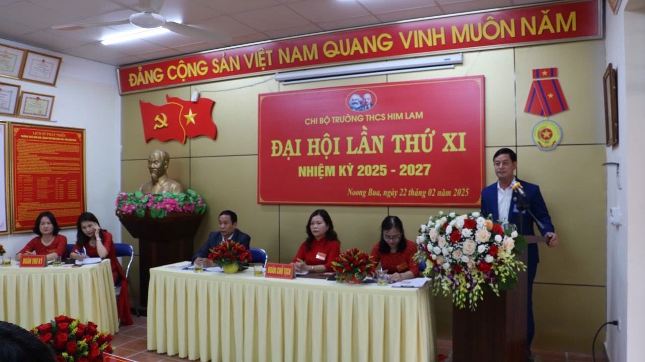 Phát biểu chỉ đạo tại Đại hội, đồng chí Trần Ngọc Sơn – Phó Bí thư Thường trực Đảng ủy phường Noong Bua đánh giá cao kết quả lãnh đạo, chỉ đạo của Chi bộ trường THCS Him Lam trong nhiệm kỳ 2022-2025; tập thể chi bộ luôn đoàn kết, tập trung trí tuệ, phát huy dân chủ hoàn thành xuất sắc nhiệm vụ được giao. Đồng chí nhấn mạnh nhiệm vụ trọng tâm trong nhiệm kỳ tới: Chi bộ phát huy cao hơn nữa tinh thần đoàn kết, trách nhiệm, đổi mới sáng tạo để hoàn thành tốt các mục tiêu đề ra.