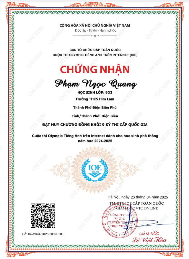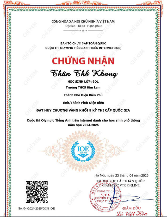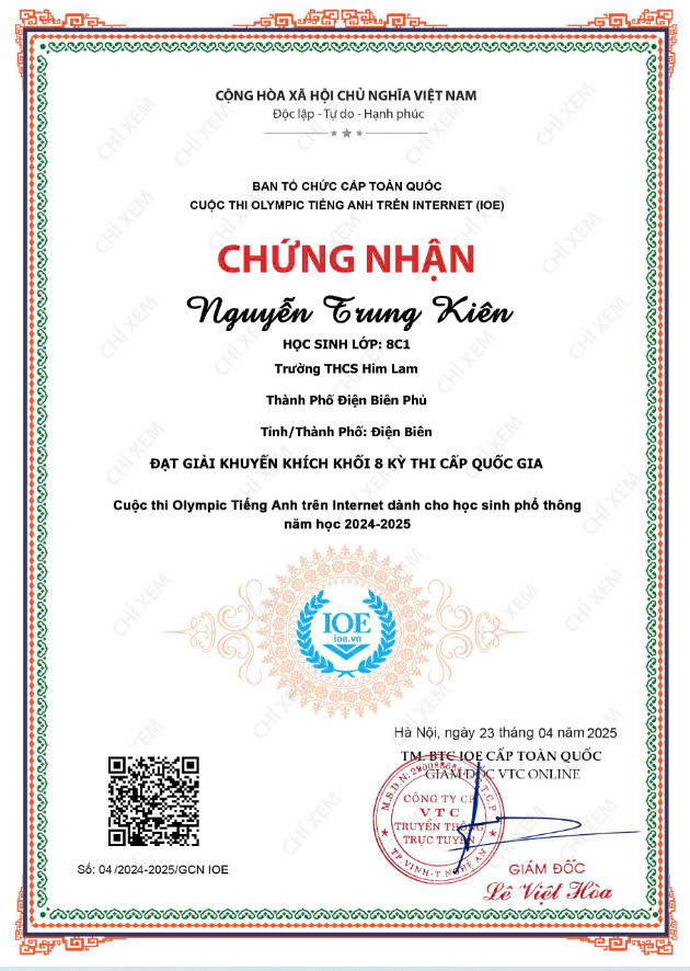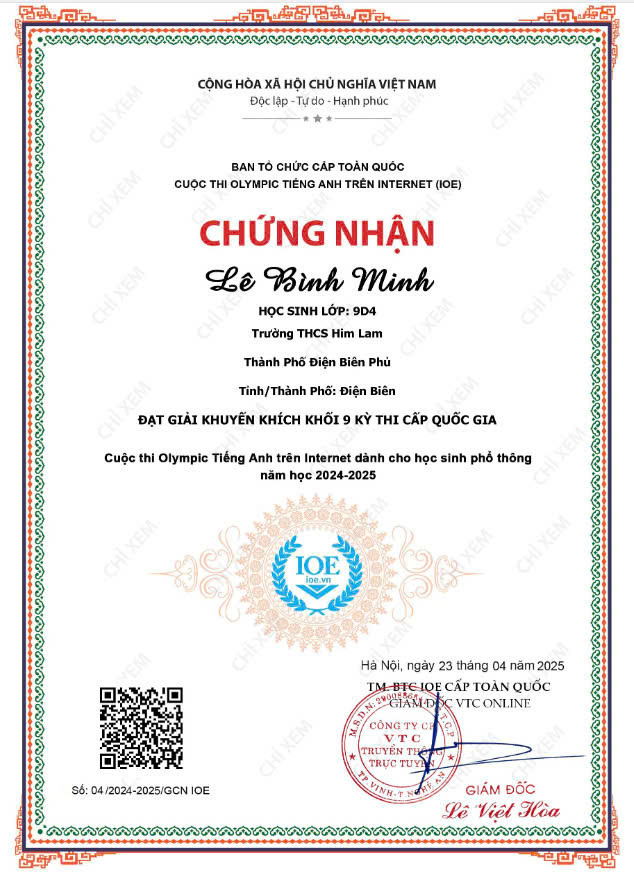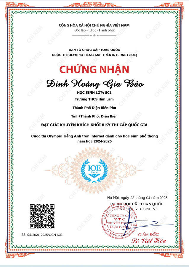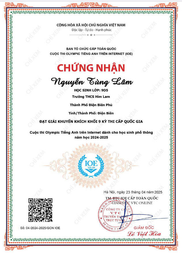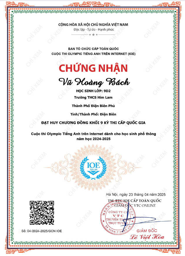 Với tinh thần nỗ lực không ngừng, đam mê học tập và ý chí quyết tâm chinh phục đỉnh cao tri thức, các em học sinh trường THCS Him Lam đã ghi dấu ấn đầy tự hào tại Kỳ thi IOE (Olympic tiếng Anh trên Internet) và Violympic Toán cấp Quốc gia năm học 2024 - 2025.