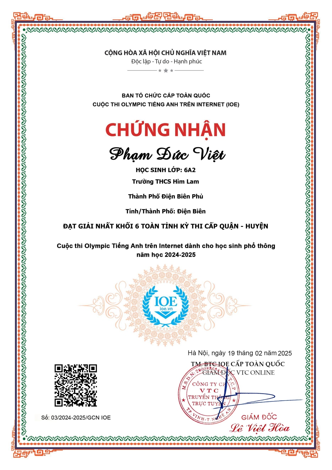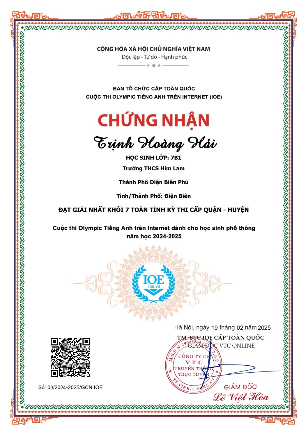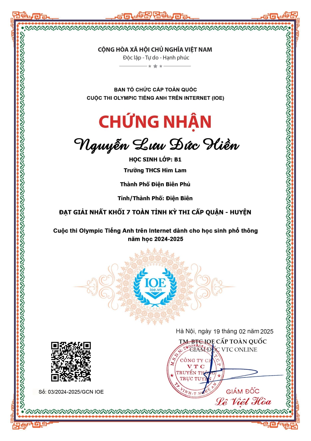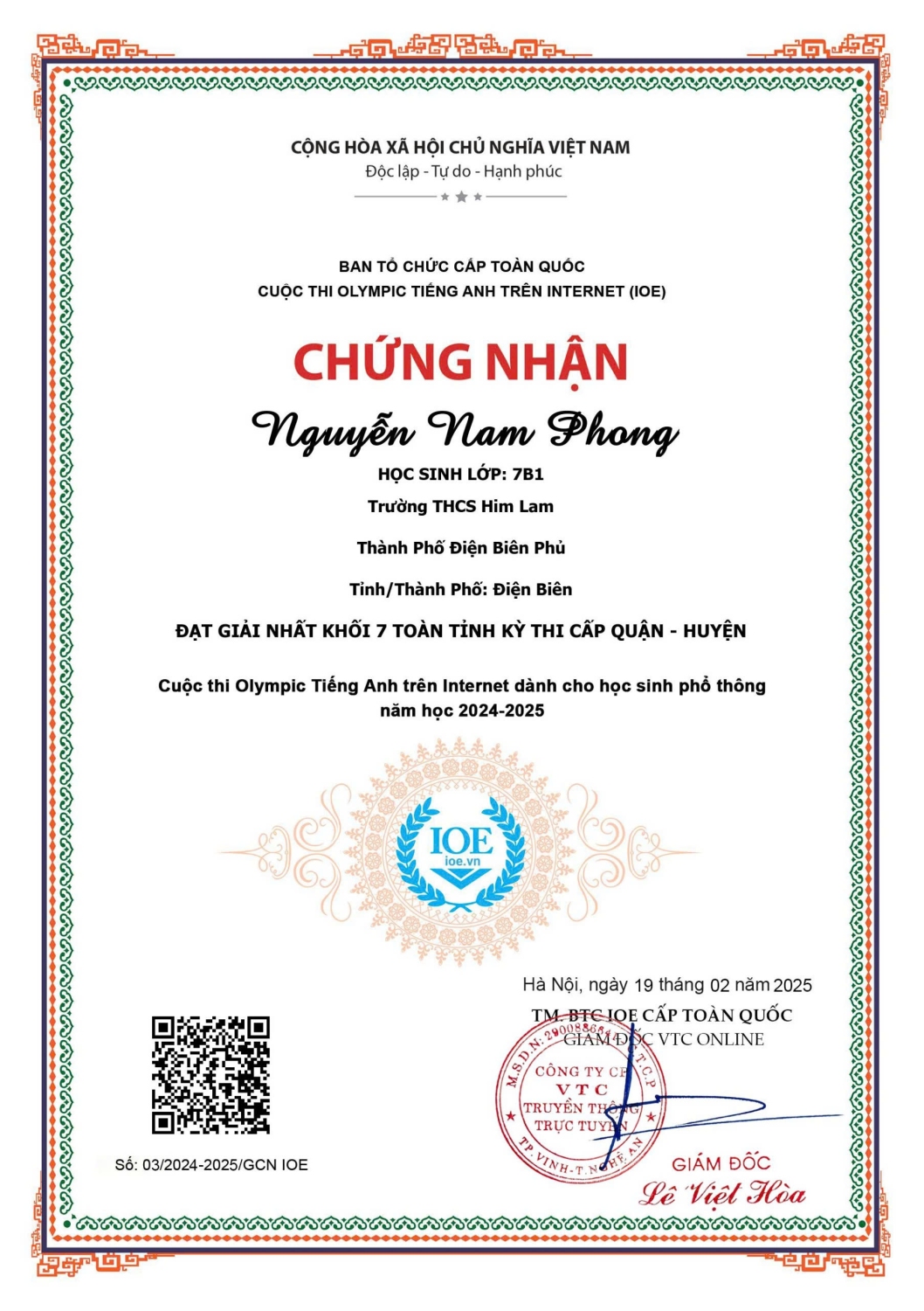 74 Giải thưởng kỳ thi học sinh giỏi cấp tỉnh – ‘‘Mùa vàng’’ của trường THCS Him Lam