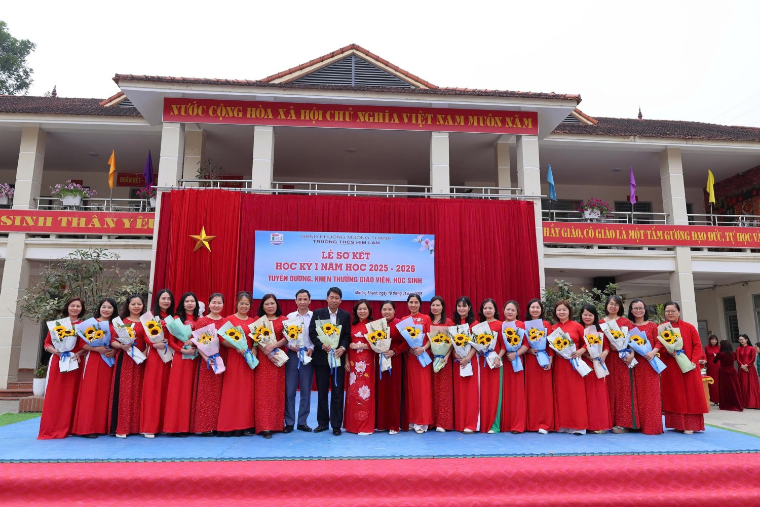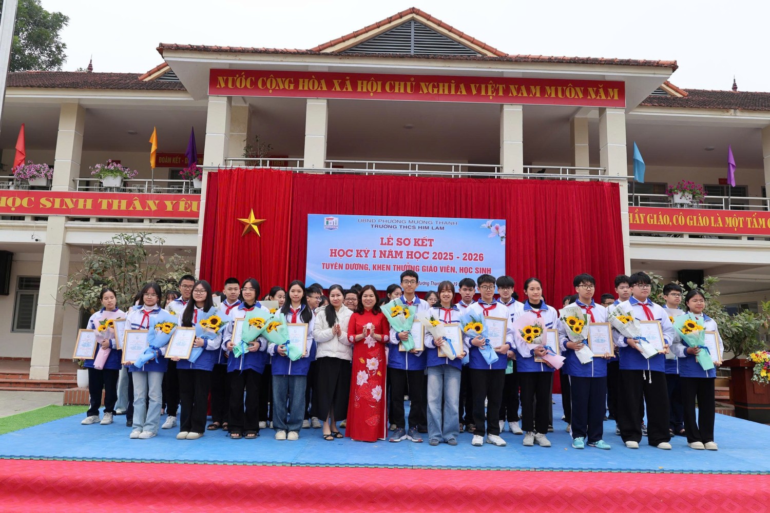 Ghi nhận những nỗ lực và thành tích đã đạt được, tại buổi lễ, nhà trường đã tổ chức tuyên dương và khen thưởng các tập thể, cá nhân giáo viên và học sinh tiêu biểu có thành tích xuất sắc trong giảng dạy, học tập và các phong trào thi đua. Cụ thể, nhà trường đã khen thưởng 74 học sinh đạt giải học sinh giỏi cấp tỉnh, 08 học sinh đạt giải tại Hội thi Nghiên cứu khoa học kỹ thuật cấp tỉnh, các cuộc thi tìm hiểu pháp luật và các môn thể thao cấp tỉnh; đồng thời trao thư khen cho hơn 400 học sinh tích cực tham gia các hoạt động Hội khỏe Phù Đổng cấp trường và Hội thi Giai điệu Tuổi hồng cấp trường. Bên cạnh đó, 35 giáo viên có thành tích nổi bật trong công tác ôn luyện học sinh giỏi cấp tỉnh, cấp phường; hướng dẫn học sinh tham gia nghiên cứu khoa học kỹ thuật cấp tỉnh và đạt thành tích cao tại Đại hội Thể thao cấp phường cũng được tuyên dương, khen thưởng kịp thời. Hoạt động khen thưởng không chỉ là sự ghi nhận xứng đáng, mà còn góp phần khơi dậy niềm tự hào, tinh thần thi đua “Dạy tốt – Học tốt” trong toàn trường. Những kết quả đạt được trong học kỳ I là minh chứng sinh động cho sự quan tâm lãnh đạo của các cấp ủy Đảng, chính quyền địa phương; sự chỉ đạo quyết liệt, hiệu quả của Ban Giám hiệu; sự tận tụy, trách nhiệm của đội ngũ cán bộ, giáo viên, nhân viên; cùng với sự nỗ lực không ngừng của học sinh và sự đồng hành tích cực của cha mẹ học sinh. Khép lại Lễ sơ kết học kỳ I, Trường THCS Him Lam bước vào học kỳ II với niềm tin, khí thế và quyết tâm mới. Phát huy những thành tích đã đạt được, nhà trường tiếp tục đẩy mạnh đổi mới quản lý và phương pháp dạy học, nâng cao chất lượng giáo dục toàn diện, xây dựng môi trường giáo dục kỷ cương, nhân văn và hạnh phúc, phấn đấu hoàn thành thắng lợi các mục tiêu, nhiệm vụ năm học 2025–2026, đóng góp thiết thực vào sự nghiệp giáo dục và đào tạo của địa phương.