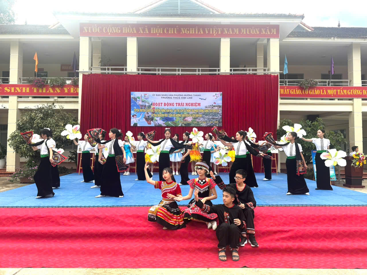 Buổi tuyên truyền có sự hiện diện của Tiến sĩ, Nhà thơ Nguyễn Thị Hồng Miên – Giảng viên chính, chuyên gia văn hóa – lịch sử, Phó Trưởng khoa Giáo dục Nghề nghiệp, Trường Cao đẳng Sư phạm Điện Biên, Cô Lò Thị Thương – Hướng dẫn viên du lịch bản địa, Bảo tàng chiến thắng Điện Biên Phủ, Nhà giáo ưu tú Cao Thị Đại – Bí thư Chi bộ, Hiệu trưởng nhà trường, cùng tập thể cán bộ giáo viên, nhân viên và 1158 em học sinh trong toàn trường. Mở đầu chương trình các em học sinh trong đội Sơn ca đã mang đến tiết mục “Điện Biên đón người” thay cho lời chào thân thiện mọi người đến với mảnh đất Điện Biên giàu truyền thống lịch sử anh hùng. Tại buổi tuyên truyền Tiến sĩ, Nhà thơ Nguyễn Thị Hồng Miên đã chia sẻ về những giá trị lịch sử – văn hóa đặc sắc của mảnh đất Điện Biên, về chiến thắng Điện Biên Phủ lừng lẫy năm châu, trấn động địa cầu và những hy sinh, mất mát to lớn mà cha ông ta đã trải qua để giữ gìn mảnh đất Điện Biên thân yêu; qua đó khơi gợi trách nhiệm của thế hệ trẻ trong việc gìn giữ, lan tỏa những giá trị quý báu đó. Thông qua kể chuyện để các em học sinh được tiếp cận sâu sắc di sản quê hương. Khi hiểu rõ nguồn cội và phong tục của dân tộc mình, học sinh sẽ trở thành những “đại sứ nhỏ” tích cực lan tỏa giá trị văn hóa quê hương đến với gia đình và cộng đồng. Buổi tuyên truyền này cũng góp phần gắn kết nhà trường, phụ huynh và xã hội – bởi mỗi bài học không chỉ dạy về lịch sử mà còn nhắc nhở trách nhiệm giữ gìn di sản cho thế hệ sau. Trong khuôn khổ chương trình, các em học sinh còn được tham gia trải nghiệm một buổi học đặc biệt về công nghệ số và AI. Dưới sự hướng dẫn của chuyên gia công nghệ và giáo viên, các em tìm hiểu cách sử dụng phần mềm AI để quay dựng và biên tập video giới thiệu di tích, phong tục Điện Biên. Các em sẽ được khuyến khích nhập vai “hướng dẫn viên nhí” – hóa thân thuyết minh các câu chuyện di sản theo phong cách sáng tạo của riêng mình. Nhờ đó, lịch sử không còn khô khan trên sách vở mà được các em đưa lên nền tảng số sinh động, thú vị.