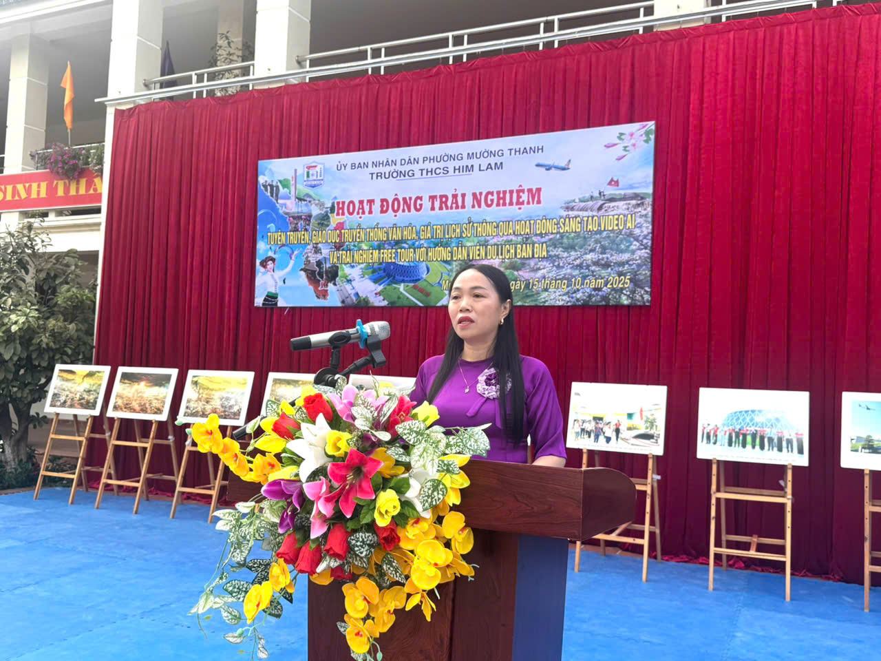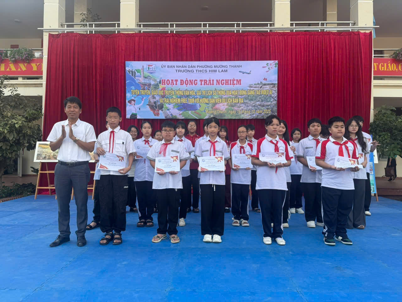 Thực hiện đề án 06 theo công số 2380/ Sở GDĐT- QLCL ngày 04 tháng 9 năm 2024 về việc nâng cao nhận thức của học sinh về chuyển đổi số, phát huy tinh thần sáng tạo, chủ động học tập trong kỷ nguyên công nghệ; thực hiện kế hoạch số 27/KH – THCSHL ngày 19 tháng 8 năm 2025 của trường THCS Him Lam về kế hoạch giáo dục nhà trường năm học 2025 – 2026. Trường THCS Him Lam xây dựng Kế hoạch tổ chức Tuyên truyền - Giáo dục truyền thống văn hóa, giá trị lịch sử thông qua hoạt động sáng tạo video AI và trải nghiệm free tour với hướng dẫn viên du lịch bản địa cho học sinh toàn trường với chủ đề: “Tuyên truyền – Giáo dục truyền thống văn hóa, giá trị lịch sử Điện Biên qua video AI và free tour”