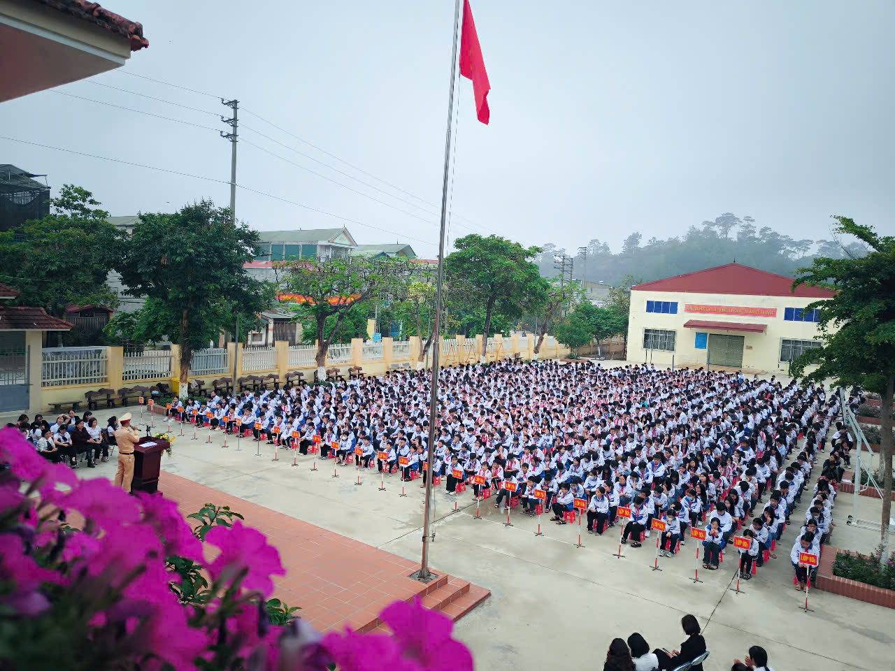 Sáng ngày 21/04/2025 trường THCS Him Lam tổ chức buổi: Tuyên truyền, phổ biến, giáo dục pháp luật về Luật Giao đường bộ tới toàn thể cán bộ, giáo viên và các em học sinh trong nhà trường