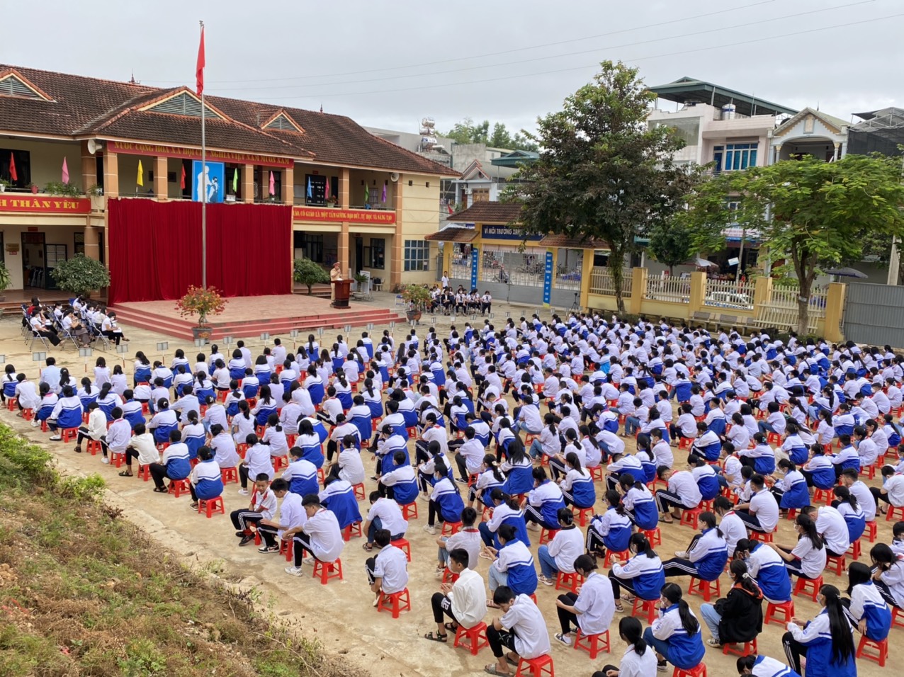 Tham gia buổi tuyên truyền có đồng chí Lù Anh Trung - cán bộ Đội cảnh sát giao thông  - trật tự Công an Thành phố Điện Biên Phủ, 55 cán bộ, giáo viên và 989 em học sinh nhà trường.
