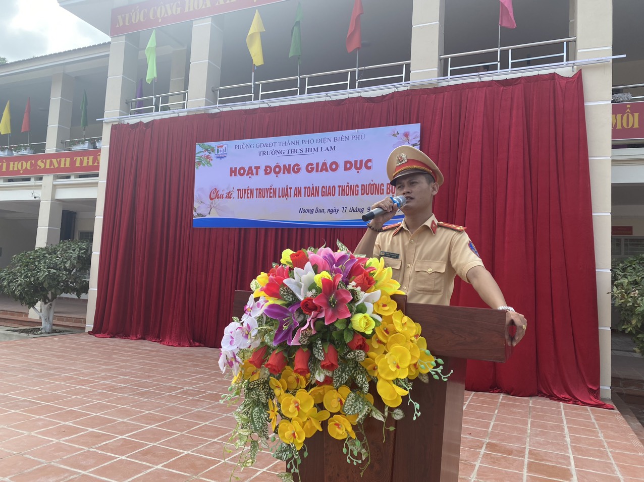 Thực hiện Kế hoạch Giáo dục tập thể, sáng ngày 11/9/2023 Trường THCS Him Lam phối hợp với phòng cảnh sát giao thông thành phố Điện Biên Phủ tổ chức Hoạt động Giáo dục tập thể đầu tuần với chủ đề: Tuyên truyền Luật an toàn Giao thông đường bộ.