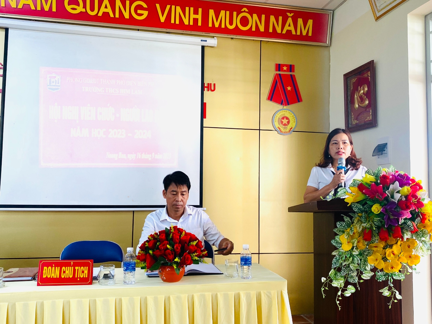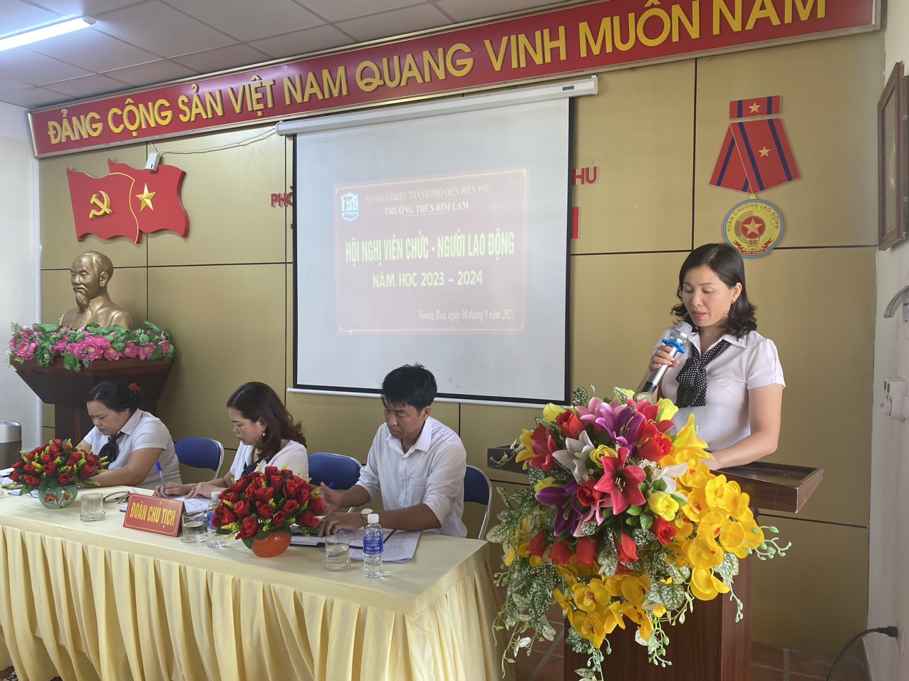 Tại Hội nghị đồng chí Cao Thị Đại – Bí thư Chi bộ, Hiệu trưởng nhà trường đã thông qua Báo cáo tình hình thực hiện Nghị quyết Hội nghị viên chức và người lao động năm học 2022- 2023 và phương hướng nhiệm vụ của năm học 2023 – 2024; báo cáo kiểm điểm trách nhiệm của người đứng đầu. Báo cáo đã chỉ ra trong năm học 2022-2023 tập thể viên chức, người lao động trường THCS Him Lam luôn chấp hành tốt đường lối chủ trương của Đảng, chính sách pháp luật của Nhà nước, thực hiện nghiêm kỷ cương, nề nếp cơ quan; tất cả các chỉ tiêu năm học đều đạt và vượt so với kế hoạch đề ra. Việc chăm lo đời sống viên chức, người lao động luôn được quan tâm, đảm bảo; dân chủ trong cơ quan được phát huy.