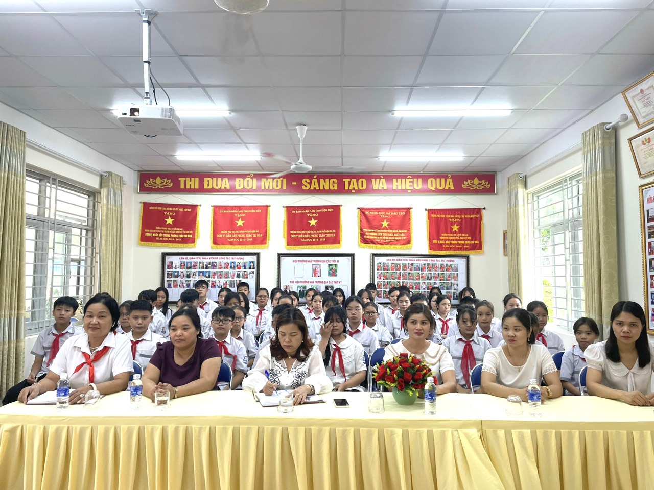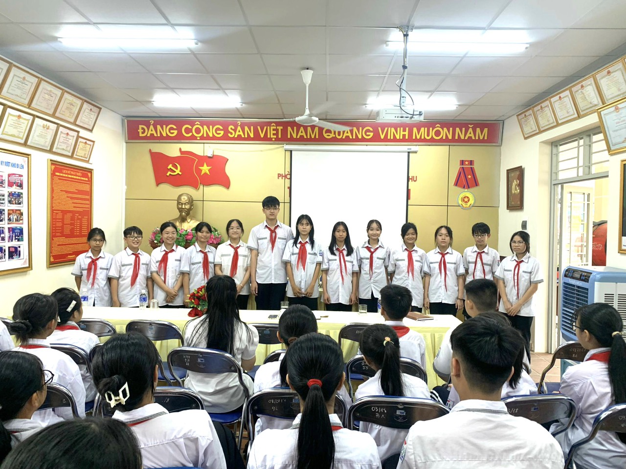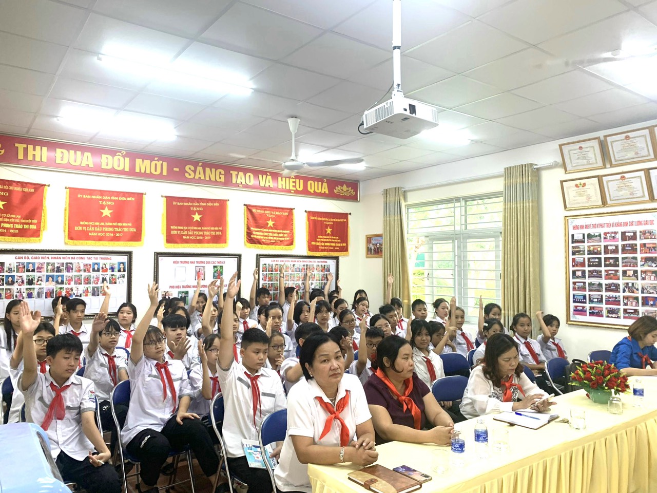 Đại hội vinh dự được đón tiếp cô Cao Thị Đại – Bí thư Chi bộ, hiệu trưởng nhà trường đến dự và chỉ đạo đại hội, cô Hà Thị Liên – Phó hiệu trưởng nhà trường, cô Vũ Thị Tuyết Lan – Tổng phụ trách Đội, cô Mai Ngọc Linh – Bí thư chi đoàn cùng 26 anh chị phụ trách các Chi đội và 55 Đội viên tiêu biểu xuất sắc được bầu về dự Đại hội.
